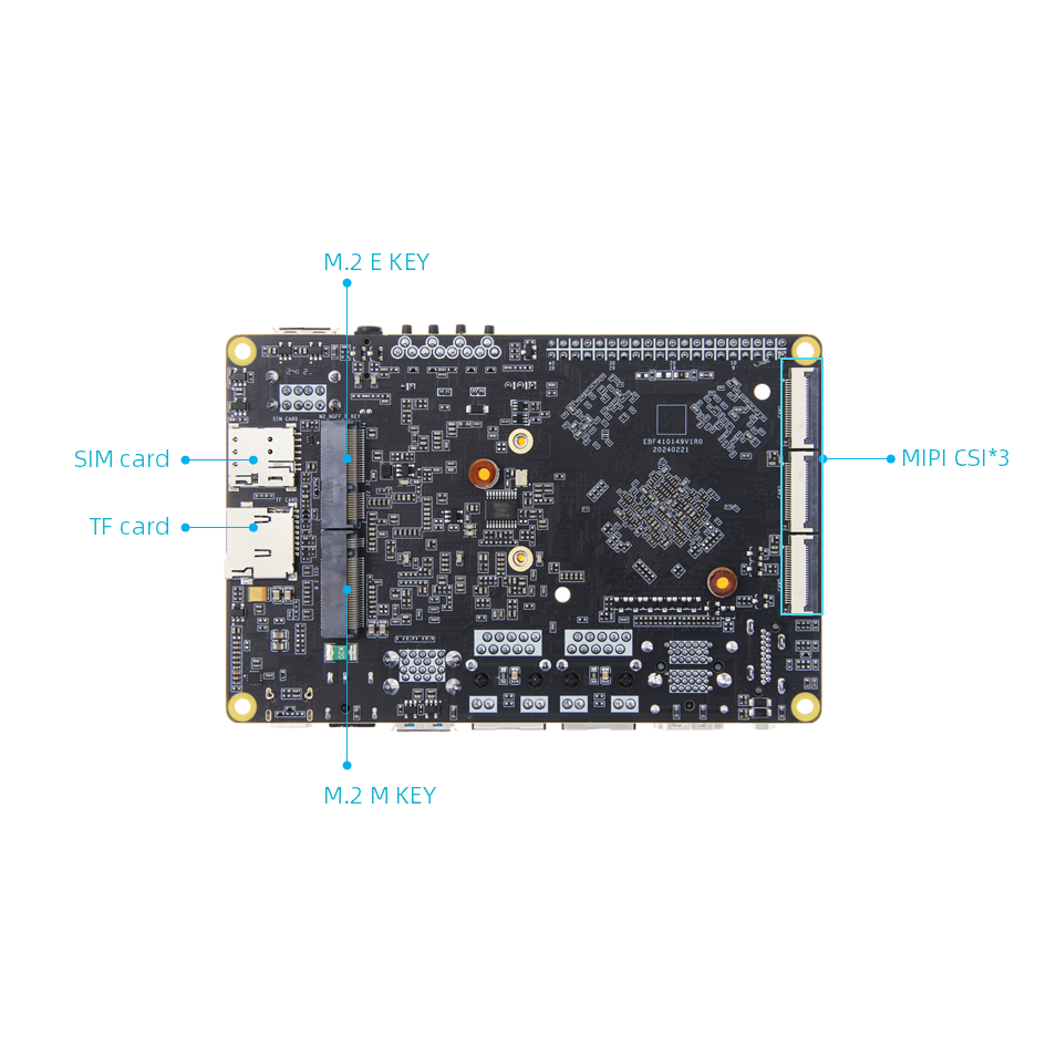 • Kernkonfiguration: 16 GB LPDDR5 RAM + 128 GB eMMC, 6-Kanal-MIPI-CSI-Kameraschnittstelle, 4-Kanal-MIPI-CSI-Schnittstelle + HDMI 2.1-Ausgang, integriertes Hardware-Videoverschlüsselungsmodul